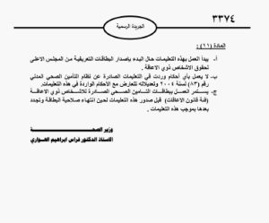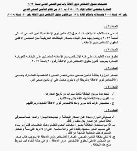 صدر في عدد الجريدة الرسمية، الثلاثاء الماضي ، تعليمات شمول الأشخاص ذوي الإعاقة بالتأمين الصحي المدني، لسنة 2023 .