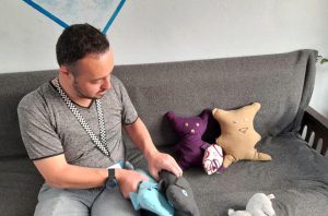 وروى نايف خلال حديثه لـ سانا الشبابية كيف يعمل على قص الأقمشة لابنه الذي يقوم بخياطتها على الماكينة الصناعية وتعبئتها بمادة الديكرون ويطلب مزيداً من القماش مع كل قطعة يصنعها، ما يعكس حالة شغفه بالعمل الذي ينفذه والذي يتوافق مع اهتمامه أيضاً بالترتيب والأناقة وجوانب النظافة بشكل ملفت.