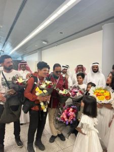 وتم إستقبال الكابتن عبدالله معلوي في مطار أبها من عائلته وذوية وفريق هايكنج وجمع غفير من المواطنين والإعلاميين والإعلاميات بالفرح والورود بهذا الإنجاز العالمي.