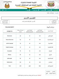 حيث حصل كل من الطالب / منصور عبدالرؤوف منصور على معدل 87,50٪ ، بينما حصل الطالب / سفيان فهد محسن احمد على معدل 84,38٪ .