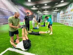 وأردف “الجهني” نشكر القيادة الرشيدة رعاها الله تعالى على الدعم والتوجيه لتحفيز المجتمع لممارسة الرياضة بكل أنواعها، واحد النقاط المهمة لممارسة الرياضة هي البيئة الآمنة من حيث المنشأة والتشغيل، و مركز د. كورة ملعب كرة قدم مغلق ومكيف بمجمع تجاري بحي غرناطة بالرياض على شارع خالد بن الوليد مع تقاطع الإمام عبد الله بن سعود بجانب بيور جيم الرجالي وقال رئيس مجلس إدارة الجمعية الخيرية لصعوبات التعلم الدكتور عثمان بن عبدالعزيز آل عثمان عند زيارته للمركز كورة اتضح بأن البناء تم على أكبر قدر ممكن من الأمان، فالمواد التي بالملعب هي ممتصة للضربات وبالتالي عند اصطدام اللاعب بأي جهة بالملعب فإنه الاصطدام سيكون مخففا على اللاعب،