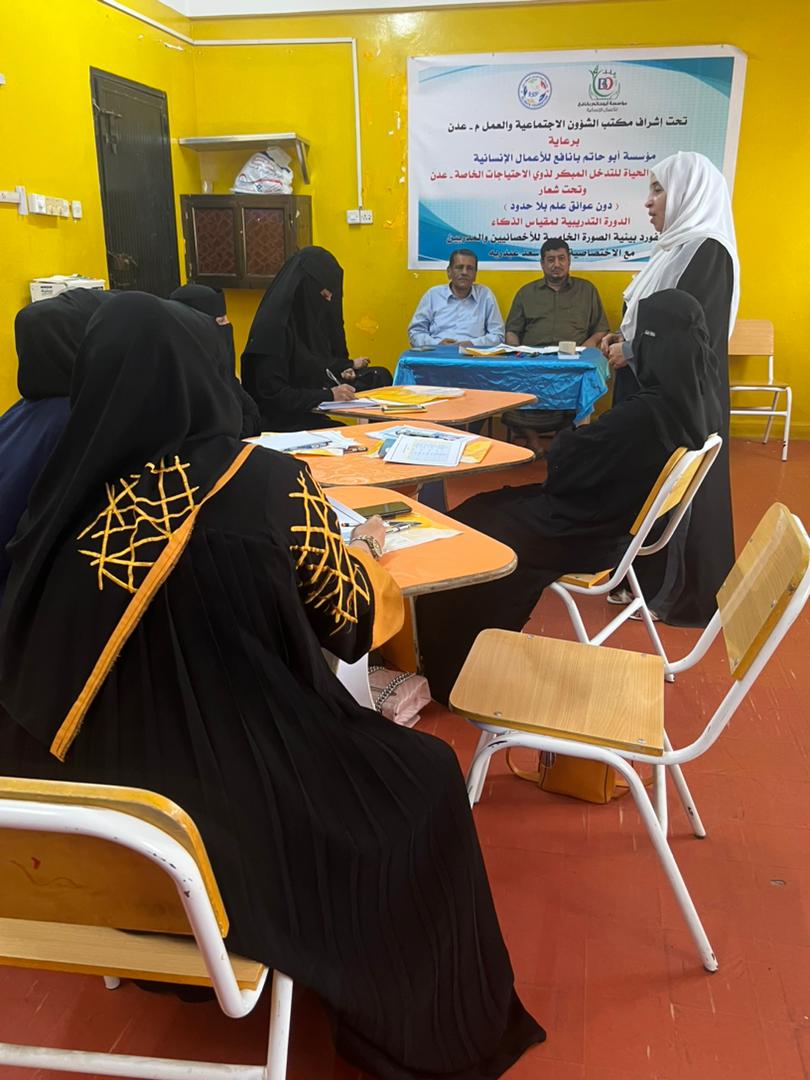 وفي افتتاح الدورة الذي حضرها الاستاذ عصام وادي مدير إدارة الجمعيات والاتحادات والتعاونيات / الشؤون الاجتماعيه والعمل عدن ، والاستاذ محمد عبدالله محتوم المدير التنفيذي لمؤسسة ابوحاتم بانافع للاعمال الإنسانية ، الاستاذة ابتهال المحروق رئيسة مؤسسة الحياة للتدخل المبكر .