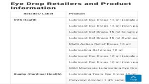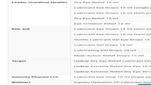 تتضمن هذه القائمة قطرات عين من انتاج شركات سي في اس هيلث CVS, و تارجيت Target و ريت ايد Rite Aid و ليدرLeader و راجبي Rugby وفيلوسيتي Velocity.