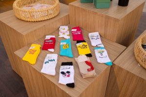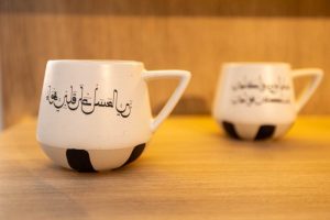 وينفرد متجر من الخمسة، بإعادة توظيف جماليات الخط العربي في منتجات قابلة للتداول، منها ملابس تزيّنت بكلمات عربية، وقطع زينة وأكواب بأشكال وتصاميم بديعة، نُحتت عليها حروف وكلمات بخط جميل ورسم يجمع الفن بالدقة، فيما كانت مكافأة هذا الإبداع هو اكتظاظ المتجر بالمشترين، ورواج حركة البيع، والرغبة في اقتناء هذه التحف البديعة .