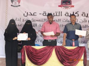 وقد حضر الحفل عدد من الشخصيات البارزة، بمن فيهم أ.د. سالم بسيس عميد كلية التربية، ونائب العميد لشؤون الطلاب أ.د. عصام صدقة، ومسؤول الأنشطة في الكلية أ. محمد المنصوري، إلى جانب وكيل وزارة الصحة د. سالم الشبحي.