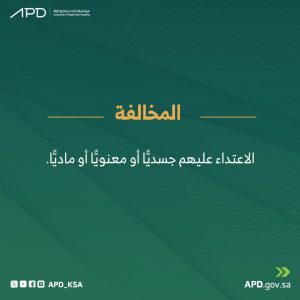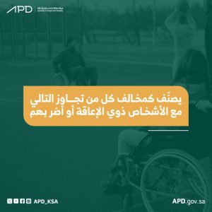 ( بعقوبات صارمة نحترم قوانين نظام حماية حقوق الأشخاص ذوي الإعاقة وتراعي احتياجاتهم لتفادي استغلالها بأي شكل من الأشكال)