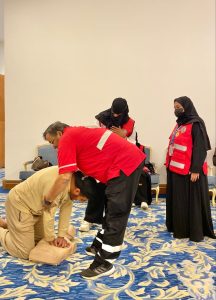 وتحرص الهيئة بشكل دائم ومستمر على تدريب كافة أفراد المجتمع مواطنين ومقيمين من خلال مركز التدريب والتثقيف المجتمعي بالمنطقة لرفع التوعية بالإسعافات الأولية.