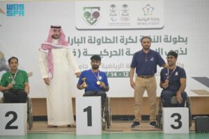 أحرز 16 لاعباً ولاعبة من ذوي الإعاقة جوائز بطولة النخبة لكرة الطاولة البارالمبية لذوي الإعاقة الحركية “أفراد”، والتي اُختتمت أمس بمنطقة تبوك منافساتها الرياضية، بمشاركة أكثر من 64 لاعباً ولاعبة قدموا من مختلف مدن ومناطق المملكة.وجاءت نتائج اليوم الثالث والأخير من البطولة التي نظمها الاتحاد السعودي لكرة الطاولة، على النحو الآتي: حقق اللاعب راكان السالمي من مدينة الطائف المركز الأول في فئة الـ ( TT1.2 )، وفي فئة الـ (TT3 ) حقق اللاعب إبراهيم آل حسن من منطقة عسير المركز الأول، فيما حقق اللاعب ناصر العليو من الأحساء المركز الأول في فئة الـ ( TT4)، واللاعب جزاء الشمري من حائل المركز الأول في فئة الـ ( TT7)، إضافة إلى حصول اللاعبين يحي علي عسيري من منطقة عسير وحسام الجريفاني من منطقة حائل على المركز الأول في فئتي الـ ( TT5 و TT6 )، وحصل اللاعب عبدالرحمن بخاري في فئة الـ ( TT8)،على المركز الأول والقادم من مدينة الطائف، فيما حصل اللاعب عبدالرحمن باموسى من المنطقة الشرقية على المركز الأول في فئة الـ ( TT9)، لتختتم البطولة برامجها التنافسية في الجولات الفردية، بفوز اللاعبين عبدالعزيز غانم وعبدالله السالمي القادمين من مدينة الطائف بالمركز الأول في فئتي الـ ( TT10- TT11).وفي السياق ذاته حصل اللاعبان عبدالله الشويهين وعبدالرحمن باموسى من المنطقة الشرقية على المركز الأول في منافسات الزوجي وقوفاً للرجال، وحصل اللاعبين عمر يحي وإبراهيم آل أحسن على المركز الأول لمنافسات الزوجي جلوساً، فيما جاءت نتائج السيدات في فئة الـ ( -5&TT4 )، وفئة الـ ( TT6&7&10)، بحصول اللاعبتين ريناد الرحيلي وميعاد الجساس من المنطقة الشرقية على المركز الأول.يُذكر أن البطولة قد قدمت الفرصة للمشاركين والمشاركات لتبادل الخبرات وتعزيز الروابط الرياضية بينهم وبين لاعبي نادي ذوي الإعاقة بتبوك المستضيف لفعاليات البطولة التي تأتي لدعم الأنماط الإيجابية في حياة الرياضيين من ذوي الإعاقة، ومساعدتهم في الحفاظ على لياقتهم الفكرية والعقلية.