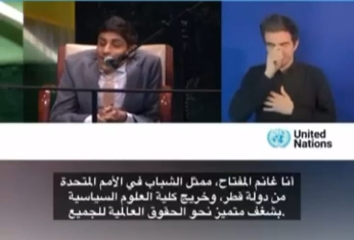 تحدث الشاب من ذوي فئة الإعاقة ..غانم محمد المفتاح والذي هو من دولة قطر العربية أمام قادة العالم في الأمم المتحدة .