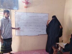 تستمر جمعية رعاية وتأهيل الصم بمحافظة لحج في تخصيص يوم بالاسبوع وهو يوم ” الثلاثاء ” لمدة ساعة من ” التاسعة صباحا حتى العاشرة صباحا ” لتعليم أولياء أمور طلاب وأطفال الصم لغة الإشارة حتى يتمكنوا من التواصل وكذلك تدريس أطفالهم في المواد الدراسية .