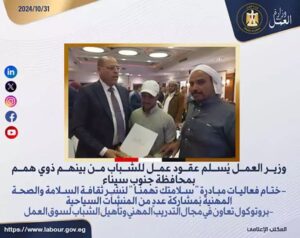 منهم ذوي الهمم.. وزير العمل يُسلم عقود عمل للشباب بمحافظة جنوب سيناء