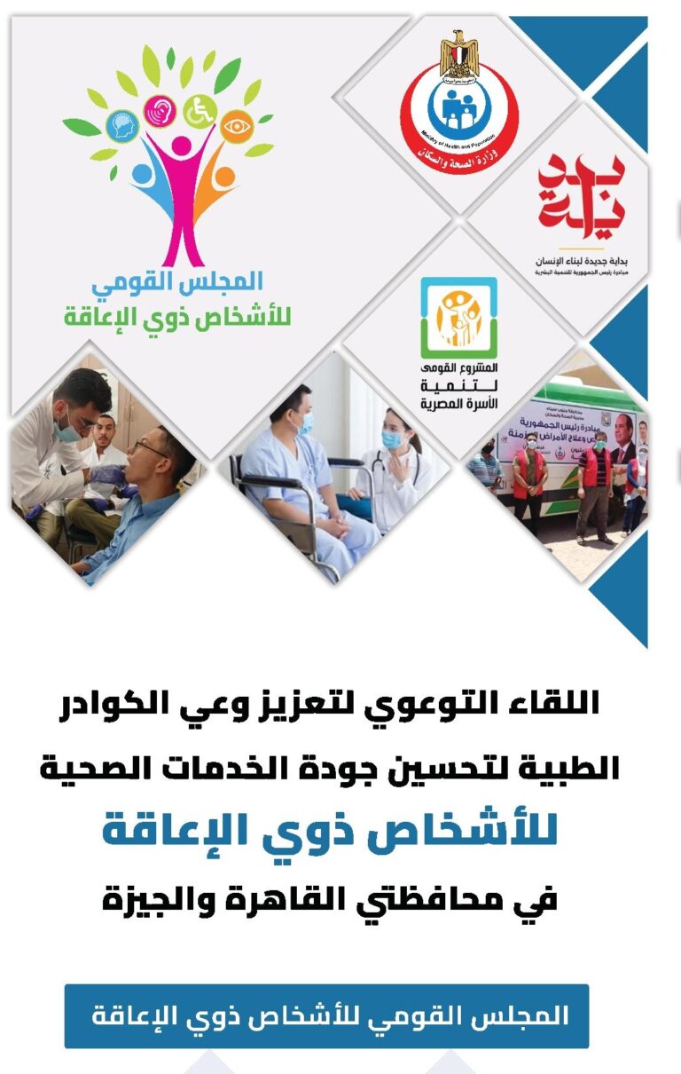 ينظم المجلس القومي للأشخاص ذوي الإعاقة، بالتعاون مع وزارة الصحة والسكان، غدًا الإثنين، لقاءًا توعويًا لتعزيز وعي الكوادر الطبية لمحافظتي القاهرة والجيزة، بهدف تحسين جودة الخدمات الصحية والطبية المقدمة للأشخاص ذوي الإعاقة.