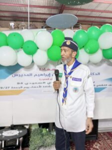 كذلك القى الرائد عبدالعزيز إبراهيم الخميس مدير مكتب رواد كشافة الاحساء كلمة نيابة عن زملائه الرواد بمشاركة الرائد مؤيد عبدالرزاق العبيدي، ثم أتبعه كلمة صاحب المتحف الكشفي بالأحساء الرائد المخضرم الأستاذ صالح بن عبداللطيف الظفر القائد الرائع والمتميز على المستويات السعوديه والخليجيه.