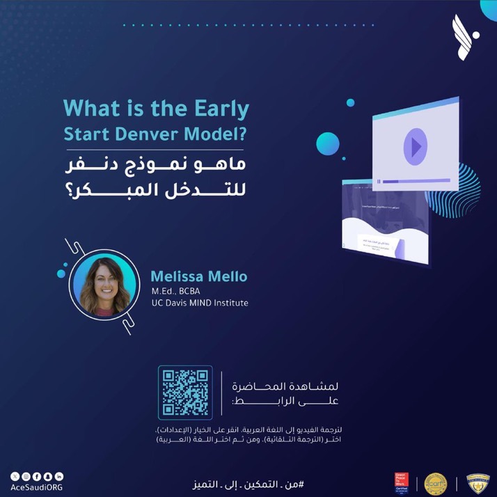 شاهدوا المحاضرة المميزة التي تُقدّمها الخبيرة العالمية أ. ميليسا ميلو (Melissa Mello)، المدربة المعتمدة في نموذج دنفر للتدخل المبكر (ESDM) و لديها خبرة أكثر من 16 سنة خبرة في التعامل مع الأطفال من ذوي التوحد