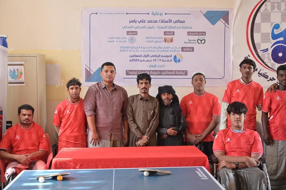 نظم مكتب الشباب والرياضة بمديرية الغيضة، بالشراكة مع الاتحاد الرياضي للمعاقين بمحافظة المهرة اليمنية صباح اليوم بطولة التنس لمنتسبي نادي الإرادة لذوي الإعاقة الحركية التابع لجمعية تأهيل ورعاية المعاقين حركياً بالمحافظة، وتعد هذه البطولة الثالثة ضمن برنامج الموسم الرياضي الأول للمعاقين في المهرة ( 2024 – 2025 ) وبدعم وتمويل مؤسسة جسر للتنمية.