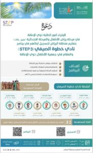 أعلنت الإدارة العامة للتعليم بمنطقة الرياض فتح باب التسجيل في النسخة الثالثة من نادي خطوة (STEP) الصيفي، المخصص لذوي الإعاقة، من طلاب وطالبات مرحلة رياض الأطفال والمرحلة الابتدائية، وذلك في إطار حرصها على دعم هذه الفئة، وتمكينها تربوياً ومجتمعياً.