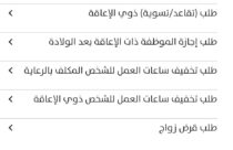 _ طلب تخفيف ساعات العمل للشخص ذو الإعاقة: تمكن هذه الخدمة الأشخاص ذوي الإعاقة من تقديم طلب لتخفيف ساعات عملهم بأنفسهم.