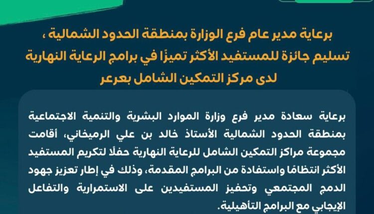 مدير فرع “الموارد البشرية” بالحدود الشمالية يرعى تتويج طالب من “التمكين الشامل” بسيارة في عرعر
