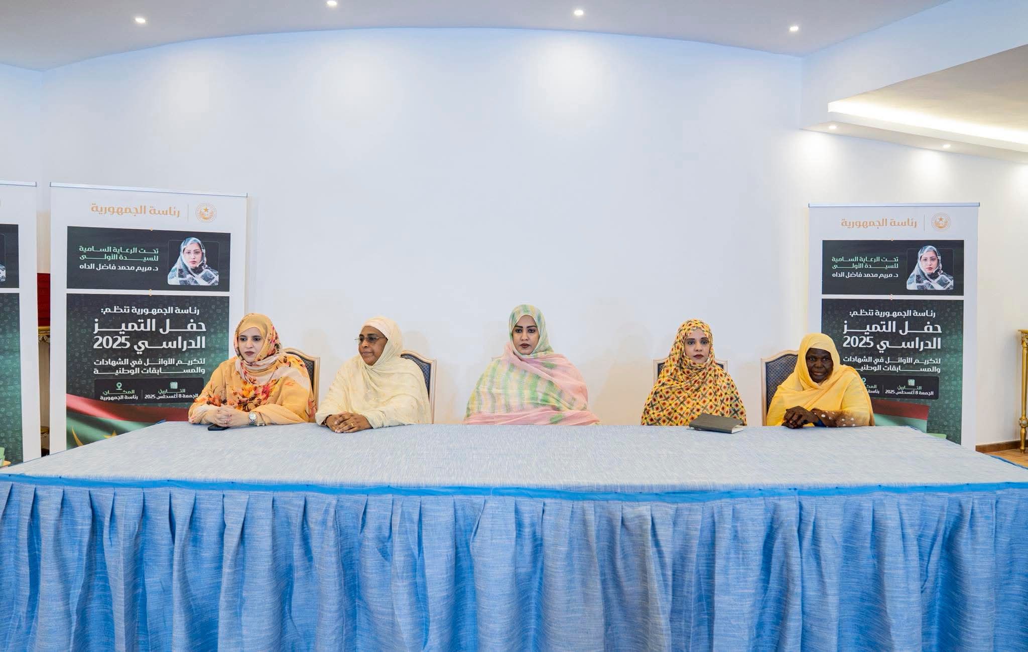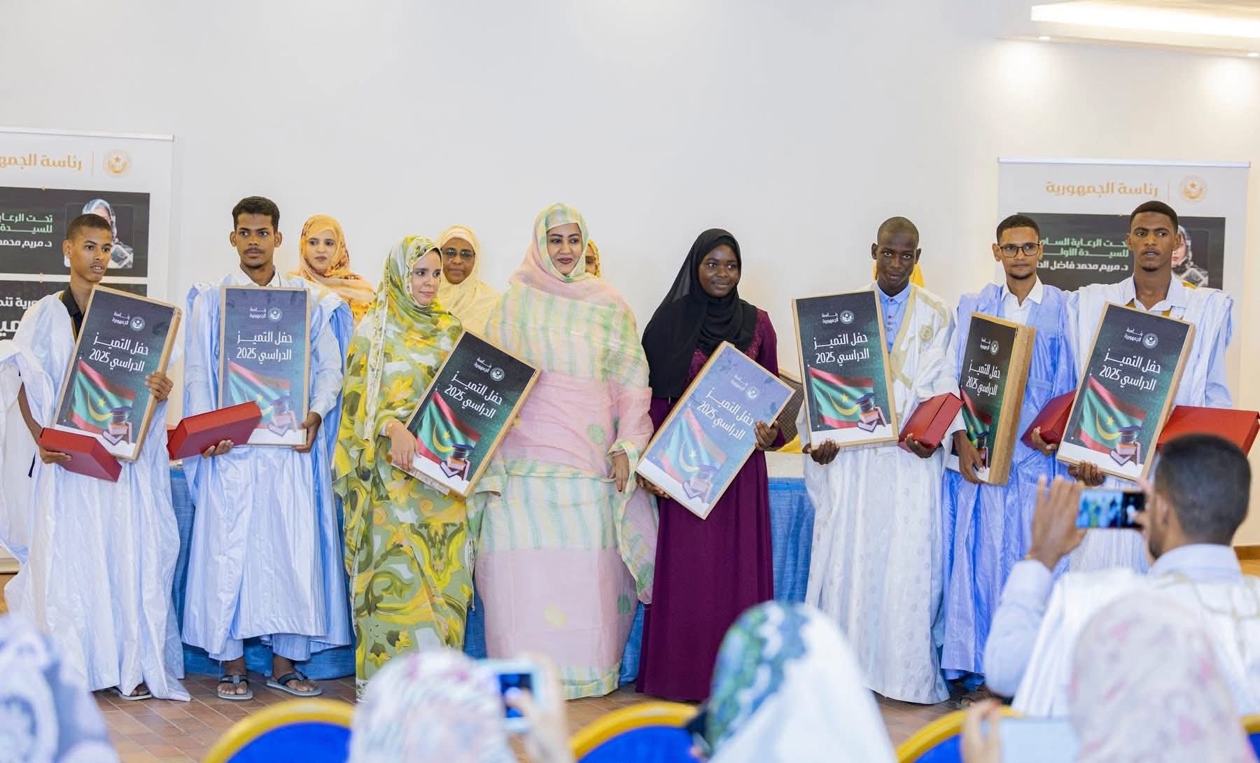 برعاية كريمة من السيدة الأولى، الدكتورة مريم محمد فاضل الداه، نُظم مساء اليوم بالقصر الرئاسي حفل تكريم الطلبة الأوائل في الامتحانات الوطنية، بمن فيهم الناجحون من الأشخاص ذوي الإعاقة في مسابقة دخول الإعدادية، وذلك بحضور عدد من الوزيرات من بينهن معالي وزيرة العمل الاجتماعي والطفولة و الأسرة وأفراد من الطواقم التربوية وأسر المكرَّمين.