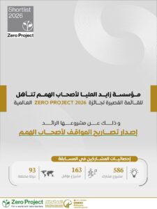 مؤسسة زايد العليا تتأهل للقائمة القصيرة لجائزة Zero Project 2026 العالمية