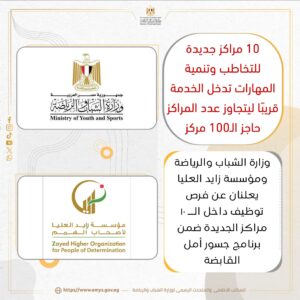 أعلنت وزارة الشباب والرياضة، بالتعاون مع مؤسسة زايد العليا لأصحاب الهمم، عن قرب إطلاق 10 مراكز جديدة للتخاطب وتنمية المهارات في عدة محافظات، وذلك في إطار خطة طموحة للتوسع في الخدمات المقدمة لأصحاب الهمم ودمجهم في المجتمع. وتستهدف هذه المراكز تقديم خدمات مجانية ومتكاملة لدعم وتمكين هذه الفئة.
