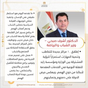 صرح الدكتور أشرف صبحي، وزير الشباب والرياضة، أن إطلاق هذه المراكز يعكس التزام الدولة بدمج وتمكين أصحاب الهمم، مؤكداً أن ما يتم تقديمه هو استثمار حقيقي في الإنسان. وأضاف أن برنامج “جسور أمل القابضة” يفتح آفاقاً واسعة أمام الشباب من خلال توفير فرص تدريب وتوظيف، مما يحقق استفادة متبادلة بين المجتمع والشباب.