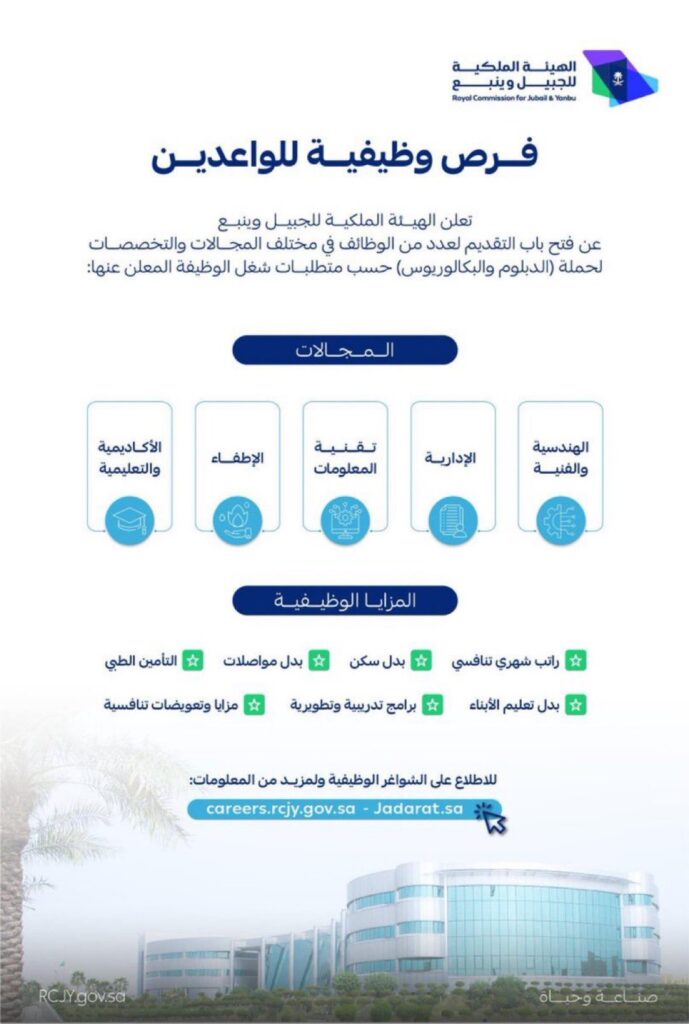 يمكن للمهتمين بالتقديم الاطلاع على التفاصيل وتقديم طلباتهم عبر الرابط الرسمي المخصص للتوظيف في الهيئة الملكية بالجبيل.