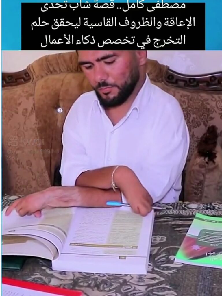عمّان، الأردن – في قصة ملهمة تملؤها العزيمة والإصرار، تحدى الشاب الأردني مصطفى كامل ساري الصعوبات الجسدية والنفسية ليحقق حلمه بالتخرج من الجامعة.