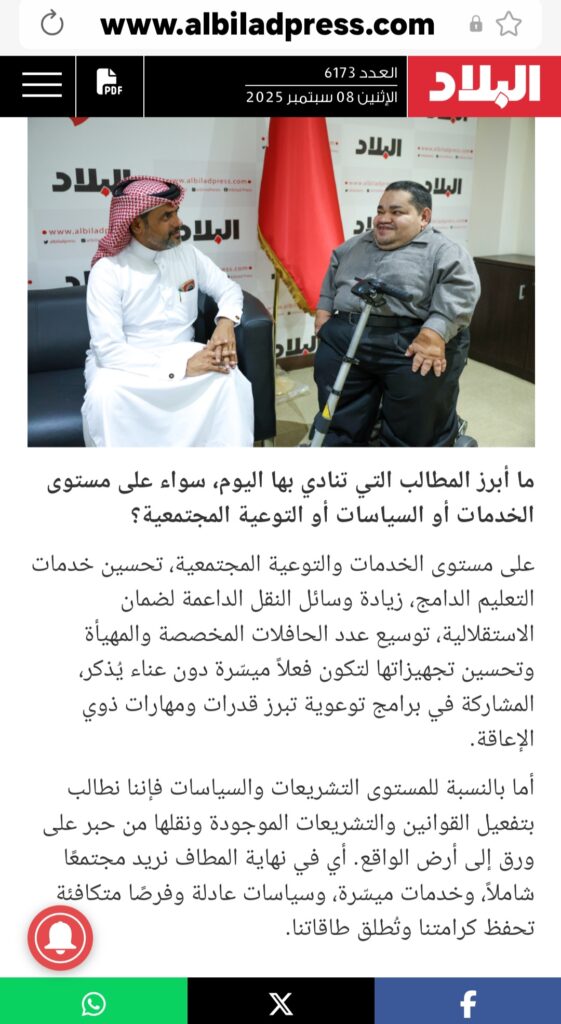 بدايةً، كيف تصف واقع الأشخاص ذوي الإعاقة في البحرين اليوم؟