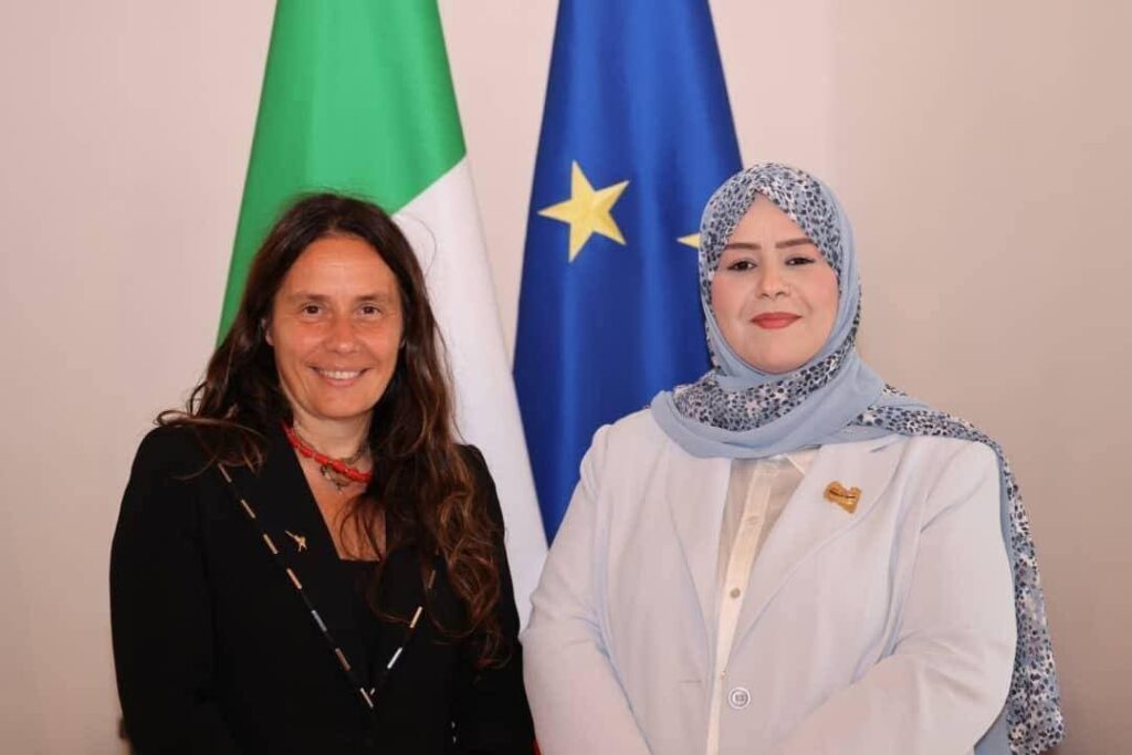 عقدت وزيرة الشؤون الاجتماعية بحكومة الوحدة الوطنية، وفاء الكيلاني، اجتماعًا مع وزيرة شؤون الإعاقة الإيطالية في العاصمة روما.