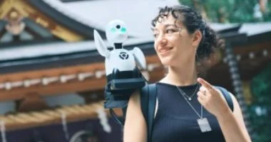 هذا الروبوت الصغير، الذى يتم ارتداؤه على حقيبة ظهر، يسمح للأشخاص الذين لا يستطيعون مغادرة منازلهم مثل ذوى الإعاقة بالعمل كمرشدين سياحيين عن بُعد، كل ما يحتاجه المرشد هو التحدث عبر الروبوت، الذى يمتلك كاميرا وميكروفون ومكبر صوت، لينقل تجربته وخبرته إلى السياح مباشرةً فى شوارع طوكيو.