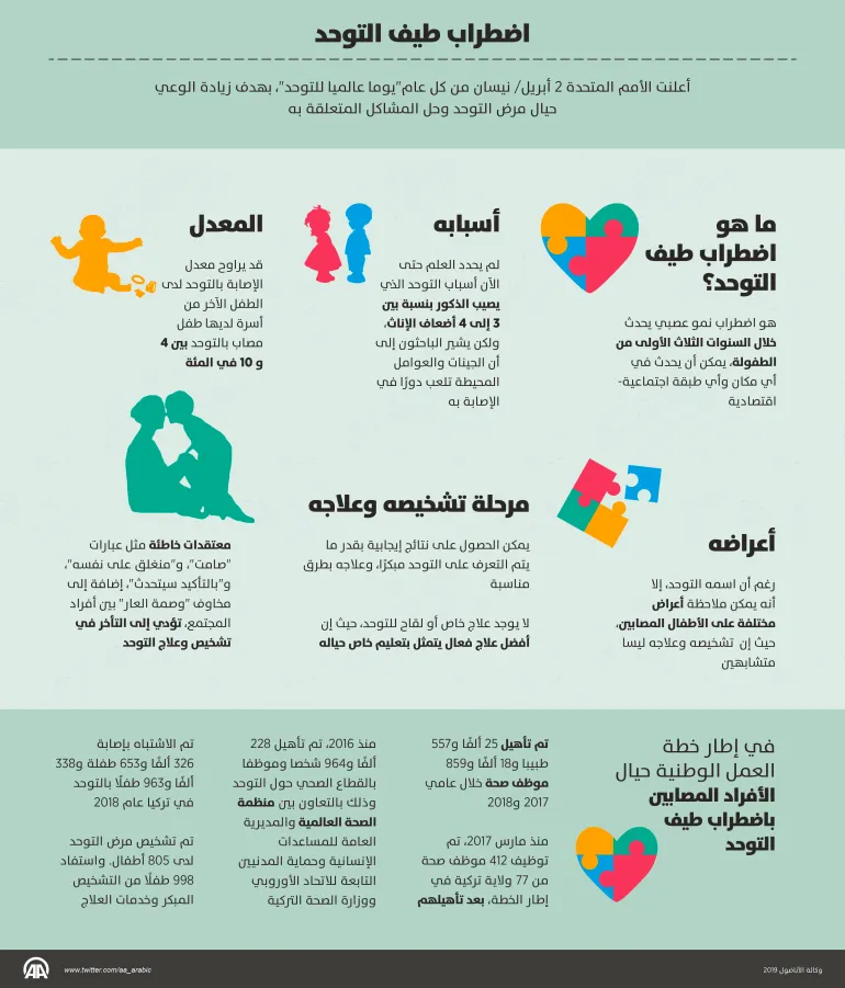 اضطراب طيف التوحد -الذي يعرف اختصارا بالتوحد- هو حالة نمائية عصبية تتميز بصعوبات في المهارات الاجتماعية والتواصلية، وسلوكيات متكررة.