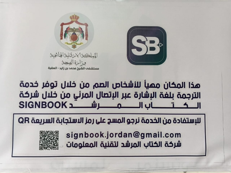 أطلق مستشفى الشيخ محمد بن زايد في العقبة، مؤخرا خدمة معالجة المرضى من فئة الصم والبكم من خلال تطبيق الاتصال المرئي (sign book) المختص بالترجمة الفورية بلغة الإشارة  عبر الانترنت   .