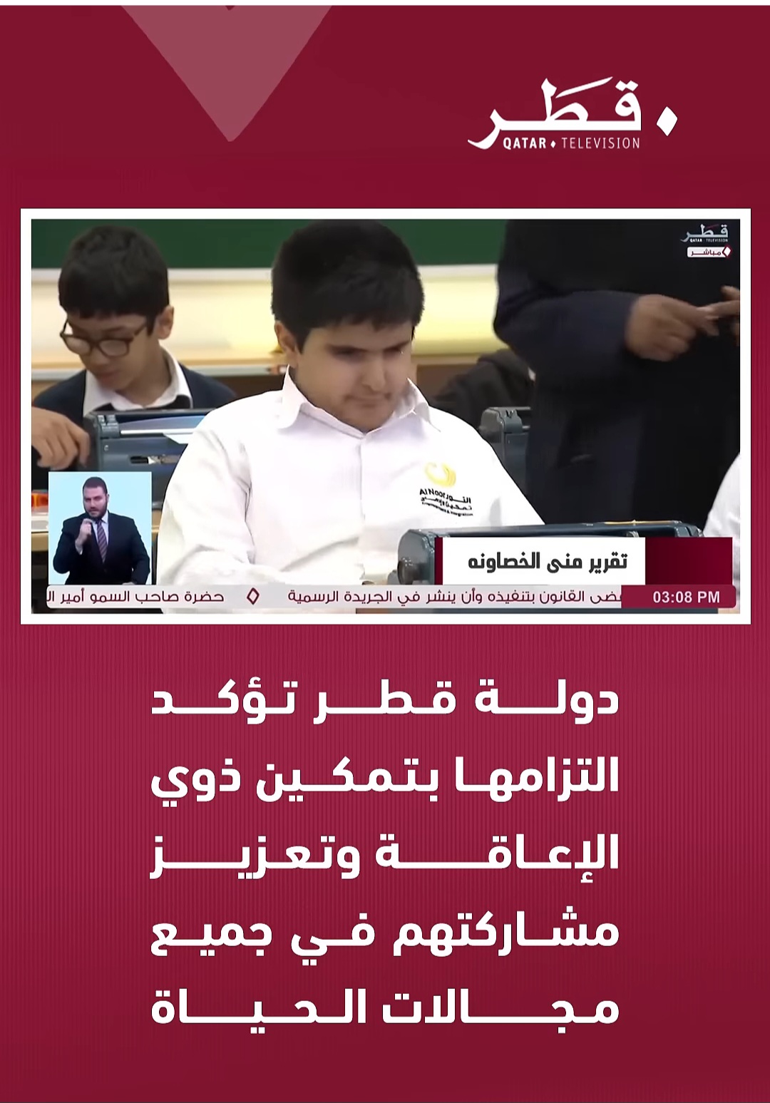 الأخبارالميدان التربوي قطر تؤكد التزامها بتمكين ذوي الإعاقة وتعزيز مشاركتهم في جميع مجالات الحياة بواسطة NOOF تم النشر في أكتوبر 10, 2025 0 1 مشاركة سنابل الأمل/ مشاهدات شاهد قطر تؤكد التزامها بتمكين ذوي الإعاقة وتعزيز مشاركتهم في جميع مجالات الحياة. الفيديو 0 1 مشاركة FacebookTwitterGoogle+ReddItWhatsAppPinterestالبريد الالكتروني