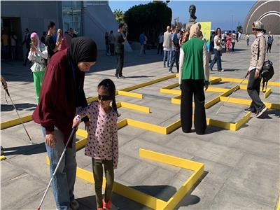 في اليوم العالمي للعصا البيضاء..المبصرون يحاكون عالم المكفوفين بمكتبة الإسكندرية