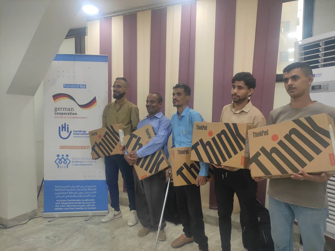 عدن – في إطار جهودها المستمرة لتمكين ذوي الإعاقة اقتصادياً، قامت مؤسسة بناء للتنمية، بالشراكة مع منظمة “هاندكاب”، بتوزيع عدد من أجهزة الكمبيوتر المحمول (لابتوبات) لبعض المستفيدين من ذوي الإعاقة من الفئات السمعية والحركية.