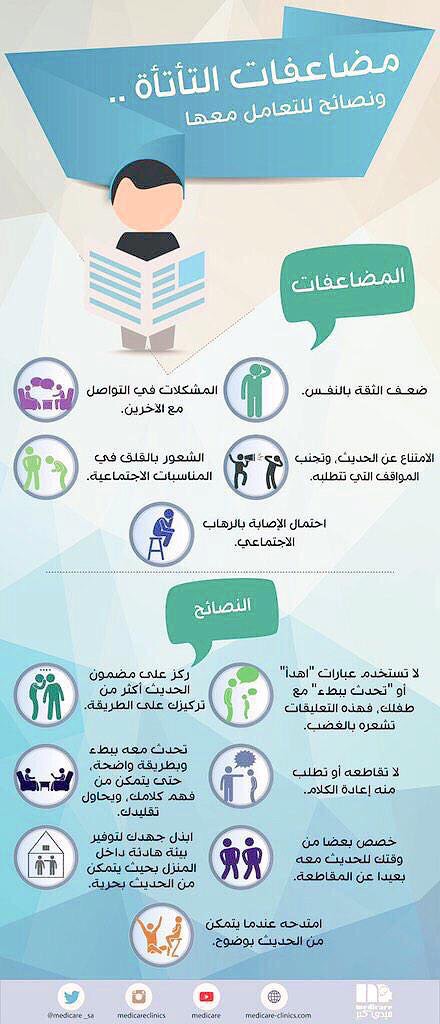 انفوجرافيك حول مضاعفات التأتأة ونصائح للتعامل معها