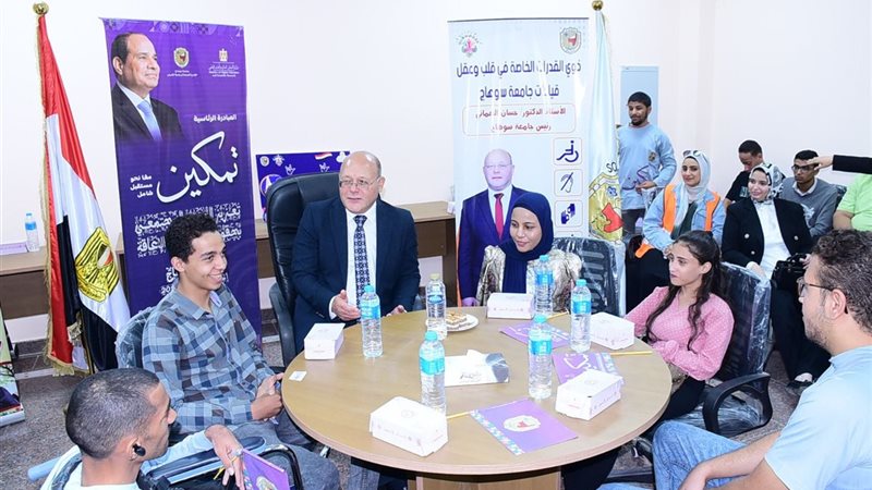 ضمن مبادرة “تمكين”.. رئيس جامعة سوهاج يتناول الغداء مع طلاب ذوي الإعاقة
