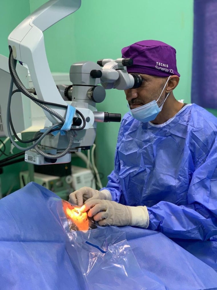وأشرف على العملية طاقم مختص في جراحة العيون بالتعاون مع فريق التخدير والممرضين، وتمت العملية بنجاح كامل، مع متابعة دقيقة لوضع المريض الصحي بعد الجراحة، وقد وثّقت الصور لحظات تلقي المريض للرعاية الطبية، وتظهر التحسّن الملحوظ في حالة العين المصابة.