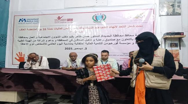 وشارك في الفعالية التي يحتفي بها العالم في الـ3 من ديسمبر كل عام، مدير إدارة الدفاع الاجتماعي بمكتب الشؤون الاجتماعية بالحديدة بكيل النهاري، وعدد من المسؤولين المحليين وممثلي الجهات الداعمة.
