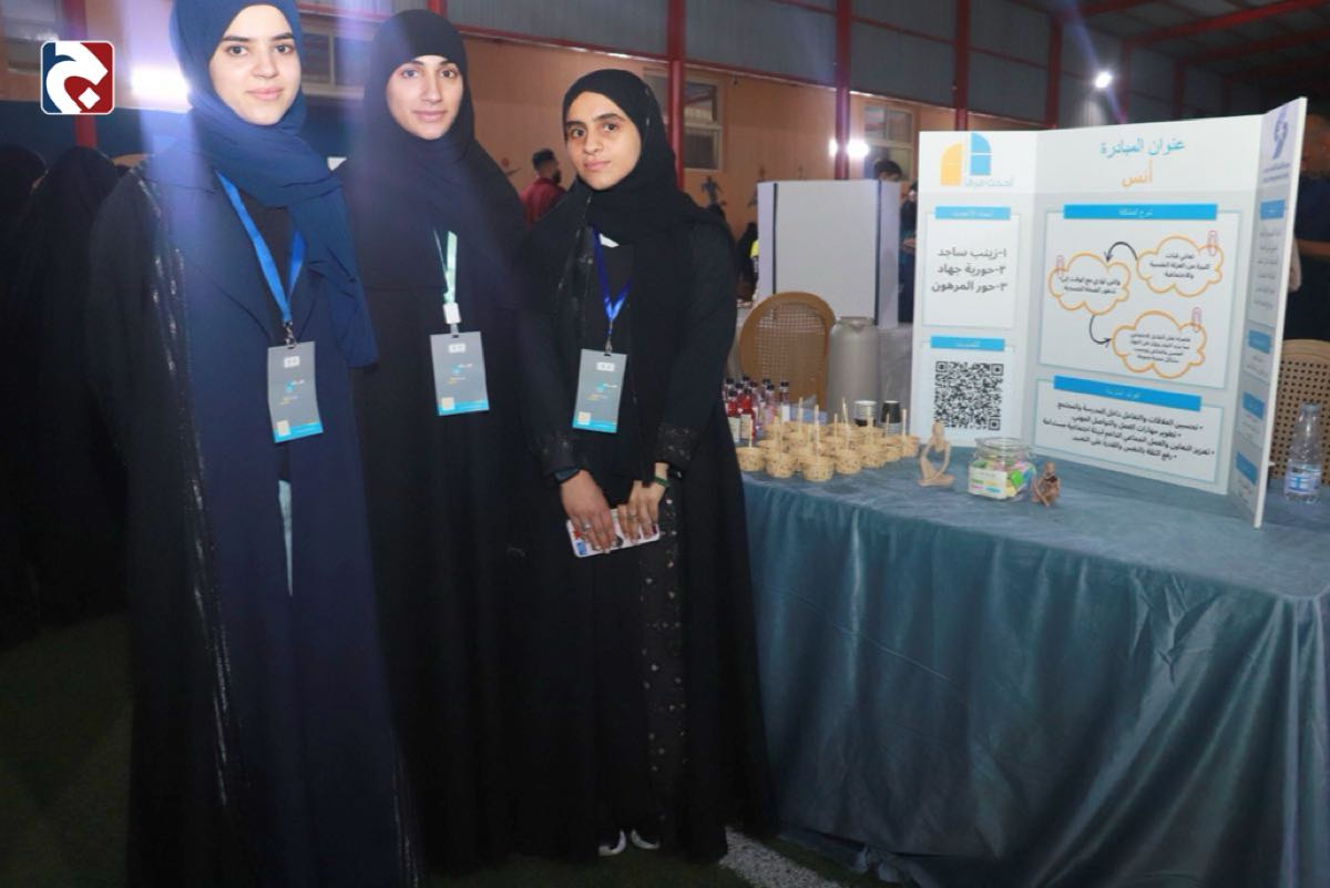وقدمت الطالبات حوراء المرهون ومريم مصطفى وكوثر المرهون، من الصف الأول الثانوي، مشروعاً إنسانياً بعنوان ”حديقة الأفق“ أو ”حديقة الطيف الهادئ“.