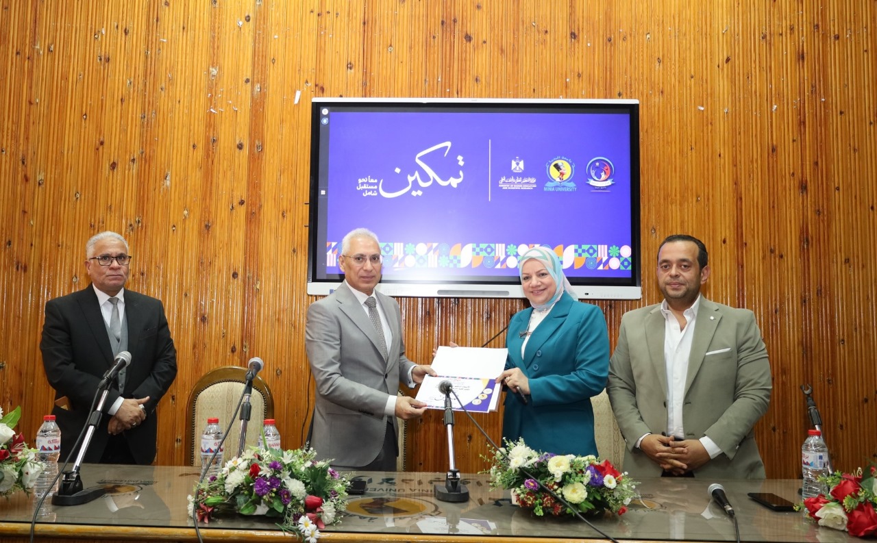 جاء ذلك خلال الحفل الختامي لأنشطة مبادرة «تمكين»، والذي نظَّمه مركز خدمات ذوي الإعاقة بجامعة المنيا بالقاعة الصغرى بمركز المؤتمرات، بحضور الدكتور مصطفى محمود، نائب رئيس الجامعة لشئون التعليم والطلاب، والدكتور حسام عبد الرحيم، مدير مركز خدمات ذوي الإعاقة، وعمداء الكليات الدكتورة وفاء رشاد راوي عميد التربية للطفولة المبكرة، وود. عمرو سليمان عميد التربية الرياضية، ود. محمود محمد فرج عميد كلية التربية الفنية، وأعضاء مجلس إدارة المركز.