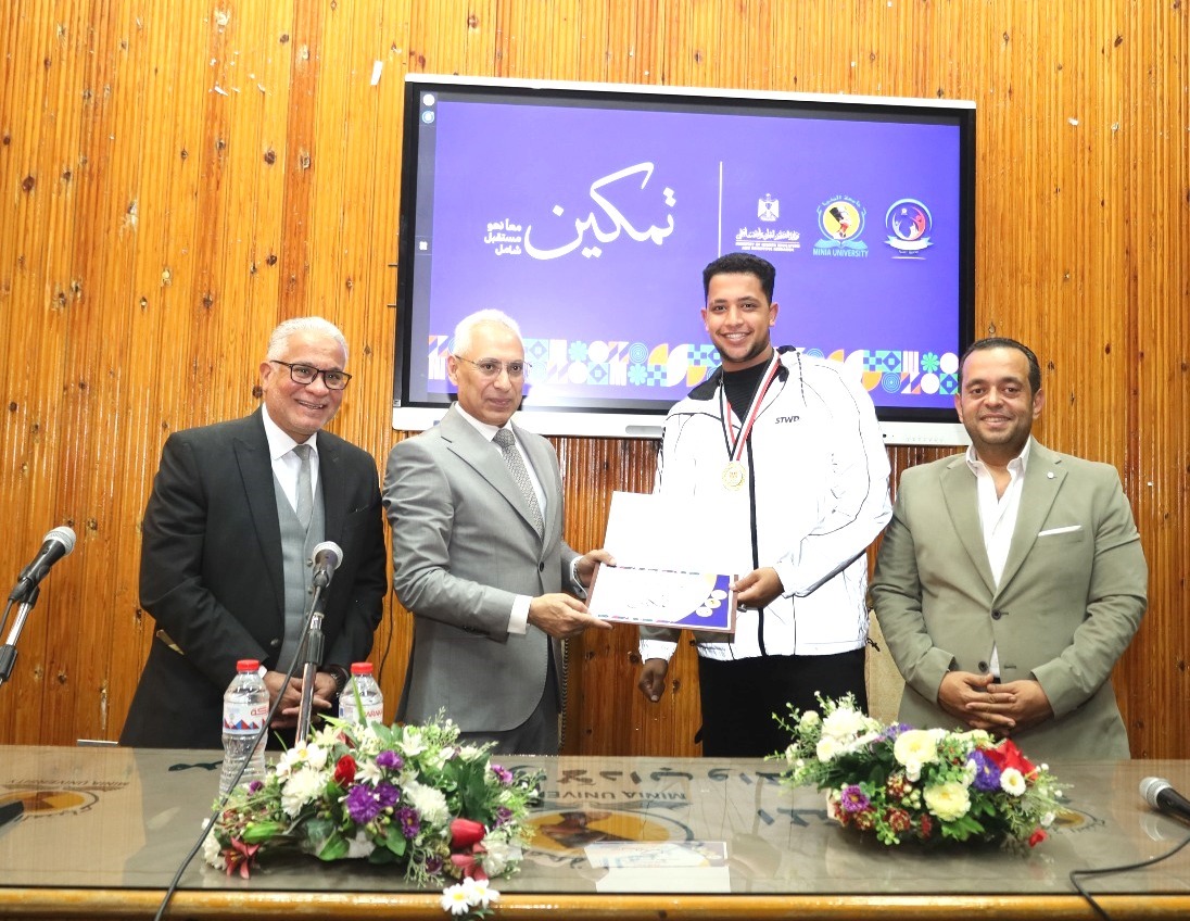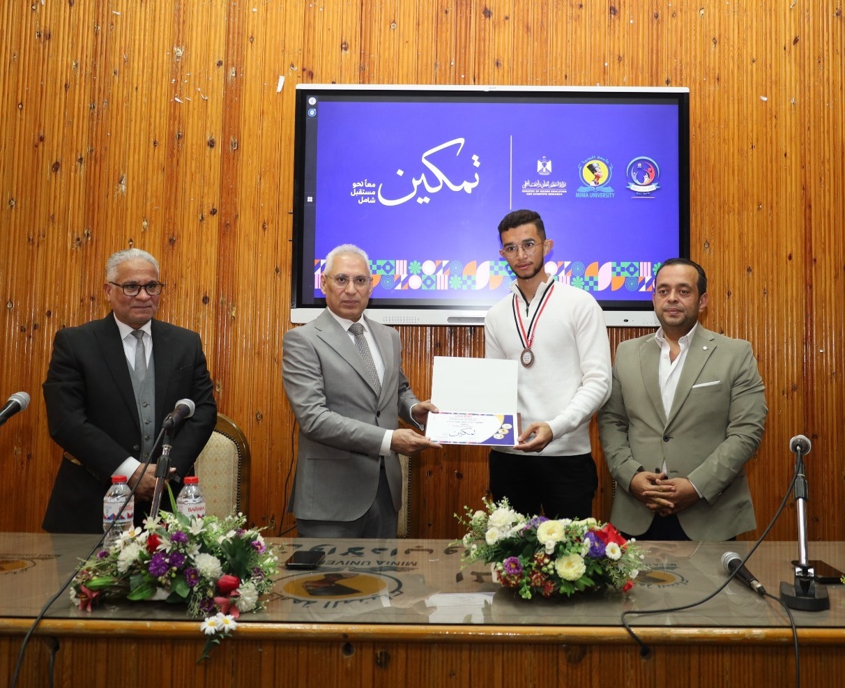 في إطار التزام جامعة المنيا بدعم وتمكين الطلاب من ذوي الإعاقة، وتعزيز مبدأ تكافؤ الفرص والدمج الشامل داخل الحرم الجامعي، كرَّم الدكتور عصام الدين صادق فرحات، رئيس جامعة المنيا، الطلاب المتميّزين من ذوي الإعاقة المشاركين في فعاليات المبادرة الرئاسية «تمكين» التي أطلقتها وزارة التعليم العالي والبحث العلمي، والحاصلين على ميداليات خلال أكبر ملتقى رياضي جامعي للطلاب ذوي الإعاقة بالإسكندرية، إلى جانب تكريم القائمين على تنفيذ المشروع.
