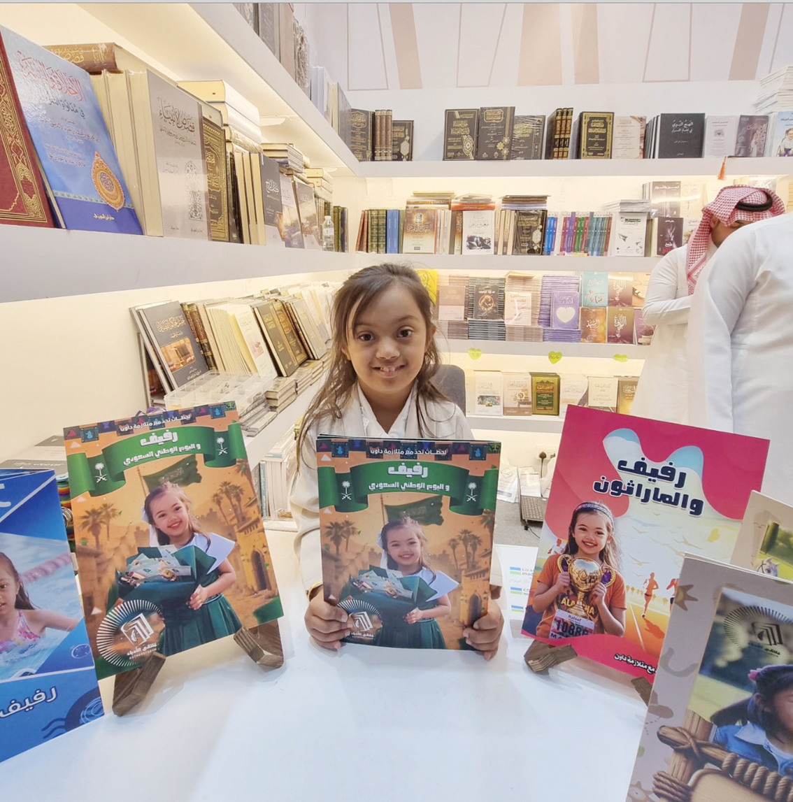 وشهد المعرض توقيع رفيف لسلسلة قصصية للأطفال بعنوان «لحظات تحدّي مع متلازمة داون»، قدّمت من خلالها حكايات مبسّطة بلغة لطيفة، تهدف إلى ترسيخ قيم التقبّل، وتعزيز الثقة بالنفس، وإبراز جمال الاختلاف بروح إيجابية قريبة من وجدان الطفل. وقد حظيت السلسلة بإشادة وتشجيع واسعَين من زوّار الجناح والمهتمين بأدب الطفل والمحتوى الإنساني الهادف. وتجسّد تجربة رفيف رسالة واضحة مفادها أن الإبداع لا تحدّه الإعاقات، وأن الموهبة قادرة على التعبير عن ذاتها متى ما وجدت الدعم والفرصة. وجاء تفاعل الجمهور مع توقيعها تأكيدًا على أهمية تمكين الأطفال من ذوي الإعاقة، وإتاحة المنصّات التي تبرز قدراتهم وتسهم في دمجهم ثقافيًا ومجتمعيًا.