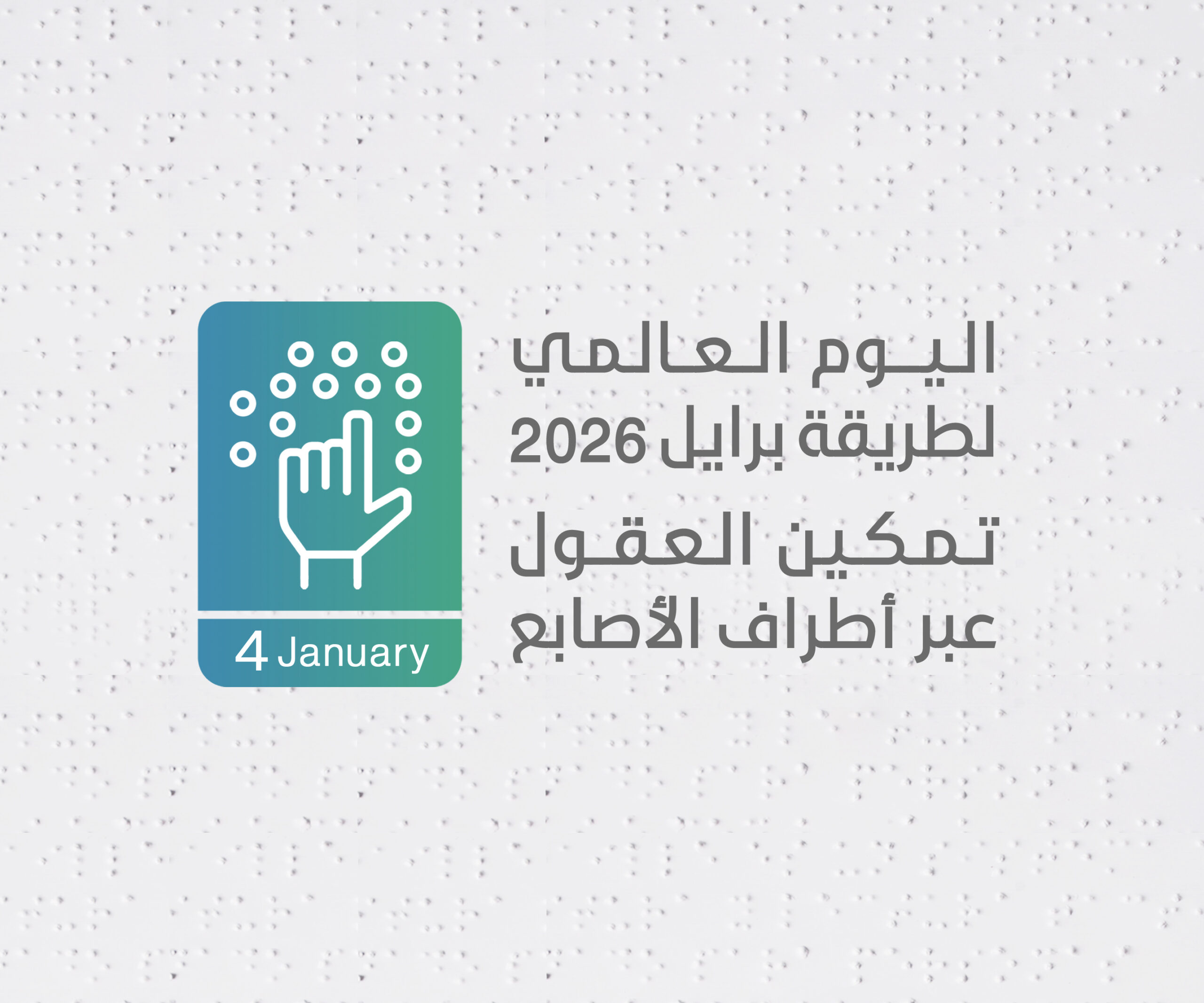 ​يشارك العالم اليوم في إحياء اليوم العالمي للغة برايل، والذي يصادف الرابع من يناير من كل عام، تحت شعار ملهم لهذا العام: “تمكين العقول.. عبر أطراف الأصابع”. ويأتي هذا الاحتفال تأكيداً على أهمية هذه اللغة كوسيلة أساسية للتواصل، وبوابة رئيسية لتمكين المكفوفين وضعاف البصر من ممارسة حقوقهم الكاملة في التعليم، وحرية التعبير، والاندماج المجتمعي.