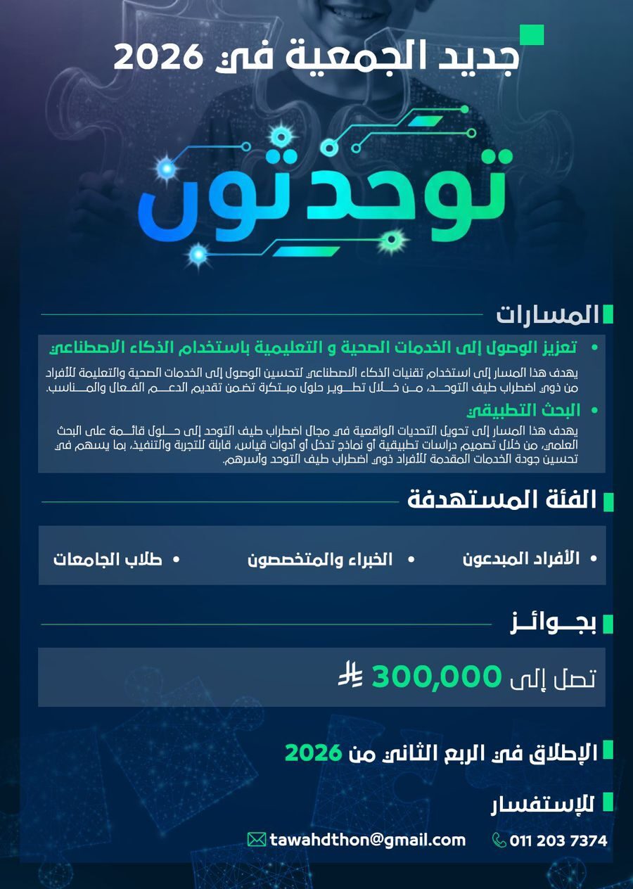 في خطوة رائدة تعزز مكانة المملكة العربية السعودية في تطويع التقنيات الحديثة لخدمة القضايا الإنسانية، أُعلن اليوم عن إطلاق النسخة الأولى من “توحد-ثون” (Autism-Thon) لعام 2026، والذي يُعد المبادرة الوطنية الأولى من نوعها في قطاع التوحد بالمملكة.