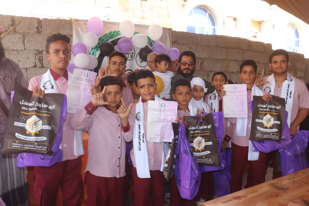 وفي ختام الحفل تم توزيع شهادات الفصل الدراسي لكافة الطلاب مع توزيع هدايا مقدمة من إدارة الجمعية ، إلى جانب توزيع هدية خاصة مقدمة من أحد أولياء الأمور ” بليغ الصبيحي ” صاحب محل للعسل ،، للحائزين على المراكز الاولى من الصف التمهيدي حتى ثاني ثانوي وعددهم 12 طالب وطالبة ، وذلك كدعم وتحفيز للطلاب ومشاركة تعزز التعاون والتكافل بين إدارة الجمعية وأولياء الأمور .
