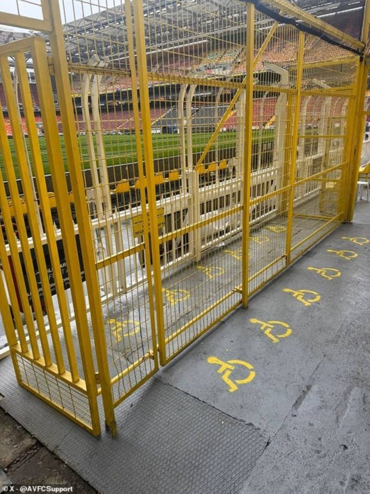 ونشر فريق دعم التذاكر في نادي أستون فيلا صوراً لقسم جماهير الفريق الضيف عبر حسابه الرسمي على منصة «إكس»، في منشور تجاوزت مشاهداته مليوني مرة، وكتب: «قسم المشجعين الزائرين بأكمله مغطى بشبكة واقية، وهو ما قد يحد من الرؤية».