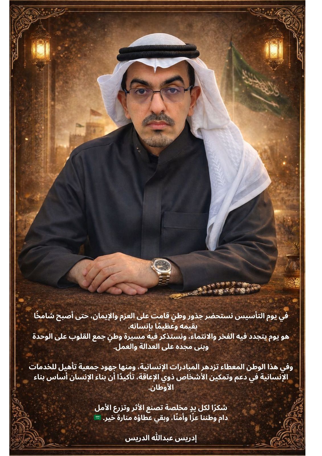 في يوم التأسيس، لا نحتفي بتاريخٍ مضى فحسب، بل نستحضر جذور وطنٍ كُتبت بدايته بالعزم والإيمان، وسارت مسيرته بثباتٍ حتى أصبح وطنًا شامخًا في عطائه، راسخًا في قيمه، عظيمًا بإنسانه.