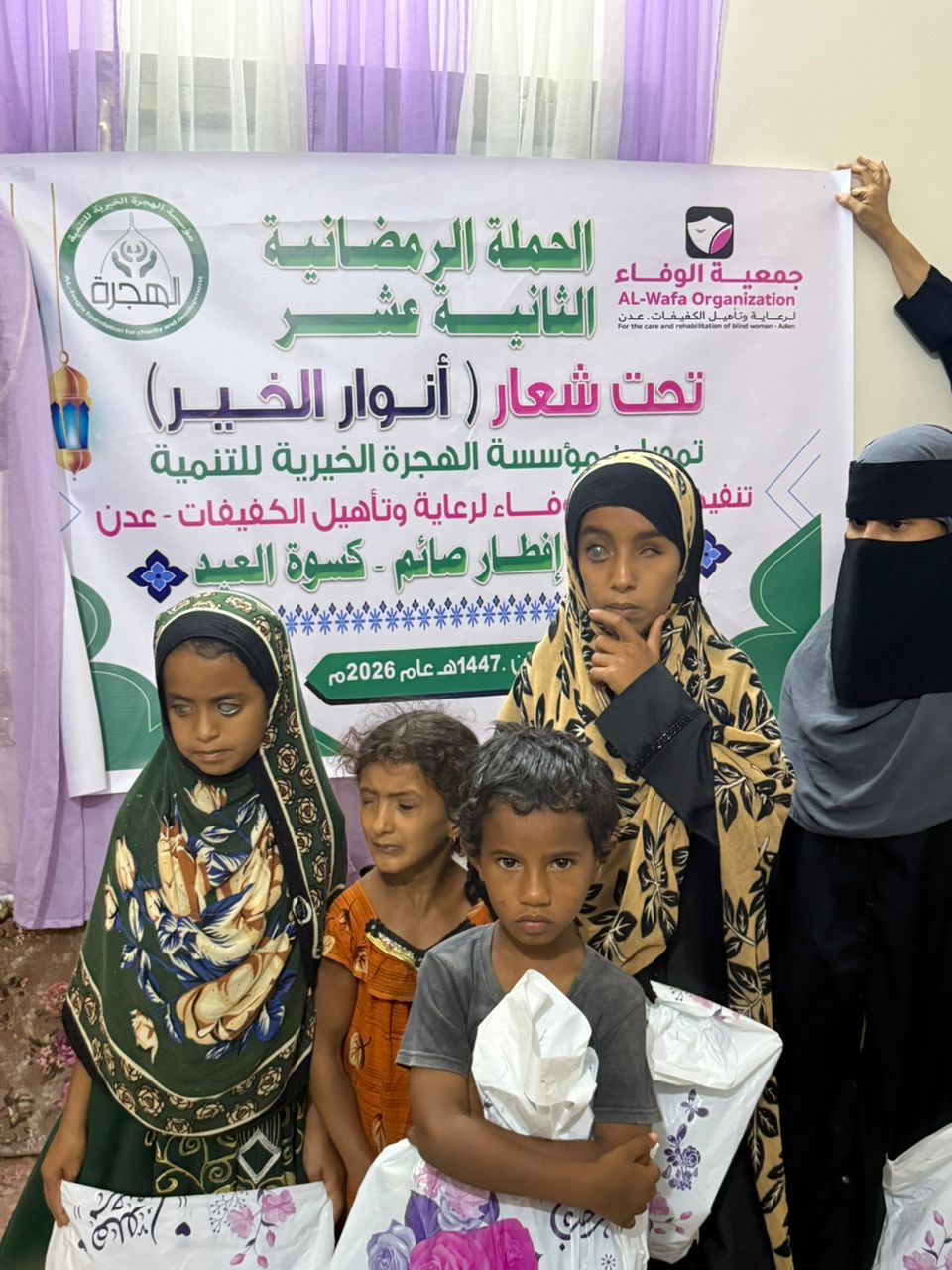 دشّنت جمعية الوفاء لرعاية وتأهيل الكفيفات – عدن فعالية إنسانية تمثلت في إقامة وجبة إفطار صائم وتوزيع كسوة العيد لعدد من ذوي الاحتياجات الخاصة من المعاقين والكفيفات ، وذلك بدعم وتمويل من مؤسسة الهجرة الخيرية للتنمية، في مبادرة تهدف إلى إدخال الفرحة والبهجة إلى قلوب المستفيدين وتعزيز قيم التكافل والتراحم في المجتمع.